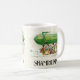 Cette tasse à café irlandaise Shamrocking personnalisable présente une vintage St. Patrick's Day Top of the Morning to You design avec l'avion Shamrock zeppelin créé à l'origine vers 1905 par Ellen Clapsaddle, une célèbre artiste de carte postale de l'époque. Vous pouvez facilement modifier l'orthographe du texte, le style de police, la couleur et la taille à l'aide des boutons Personnaliser et Modifier Zazzle ou, vous pouvez supprimer complètement le nom. Le dessin est imprimé sur les deux côtés de la tasse.