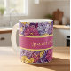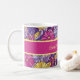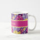 A beautiful abstract floral stained glass style pattern decorates this fun retro 60s vibe coffee mug. Text can be changed. Generated with AI by IveyCottage.