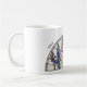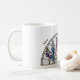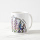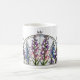 Celebrate July with this Larkspur stained glass-inspired mug. Purple, blue, and pink flowers form a luminous circular design. Not real stained glass, printed on ceramic. Personalize with name and flower meaning (“Positivity”) for birthdays or keepsakes.