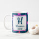 Cette tasse monogramme est une excellente façon de commencer votre matin. Un motif étoilé rose vif apparaît contre un arrière - plan bleu vif des deux côtés de cette tasse. Votre monogramme est présenté dans un carré avec le nom de famille et l'année. La lettre, le nom et l'année peuvent rapidement et facilement être personnalisés. Design original - C. McGouldrick