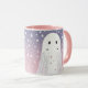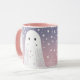 Un fantôme fantaisiste flotte parmi des étoiles scintillantes dans un ciel oniriquement dégradé de teintes rose et violette, entouré de délicats motifs étoiles blancs.