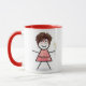 Mignonne fille en bâton avec cheveux, lunettes rouges, robe en vichy, et tenir des marguerites avec une citation inspirante pour toute femme. Le nom peut être modifié ou supprimé.