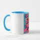 Ce design de tasse audacieux et dynamique comprend les mots "SUPER MOM" dans un style de bande dessinée rétro, avec des lettres roses éclatantes surlignées de blanc et d'une ombre turquoise, dressées contre un starburst orange vif. Le design de la tasse est plus encore agrémenté de fleurs roses stylisées avec des feuilles turquoises et des étoiles orange parsemées, le tout contre un arrière - plan de lignes rayonnantes turquoises et roses. Ce design de tasse célèbre l'incroyable force et l'héroïsme des mères d'une manière amusante et attrayante, en faisant un cadeau de jour de super-mères et une tasse de jour de mères cool.