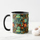 Cool coloré abstrait vie aquatique style de dessin animé avec noir arrière - plan vert méduse et coraux rouges accents
