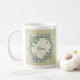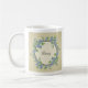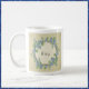 Belle tasse décorative avec un beige bronzé, arrière - plan rayé et une couronne de fleurs bleues. Personnalisez avec votre nom/nom de destinataire ou vos initiales. Design de style victorien.