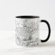Scène de paysage en stylo et encre noir et blanc sur une tasse à café dans différents styles.