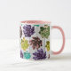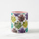 Succulents de couleur tendance et tasse de planches de bois blanc.