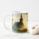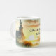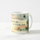 Mug Sunrise Church with Birds in Misty Meadow Text