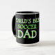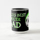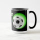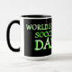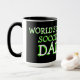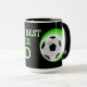 Mug unique, drôle, coloré, contemporain et décoratif pour le café, le thé, le lait ou le jus. Avec l'image d'un ballon de foot sur un fond de couleur noire et verte. Et citation "Meilleur Papa de Foot du Monde". Cadeau d'anniversaire pour papa, fête des pères ou cadeau de Noël, mignon et amusant. Un mug cool et original pour le plus grand et le meilleur papa du monde.