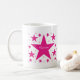 Superstar Collection Mug en magenta avec une cascade d'étoiles amusantes. Ce design d'étoile mignonne et girly ferait un grand cadeau à toute fille, nièce ou autre jeune femme dans votre vie. Le texte peut être laissé tel quel ou être personnalisé pour dire ce que vous voulez. Des dizaines de polices et de couleurs au choix !