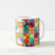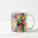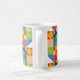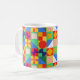 Cette tasse a un design Bauhaus de carrés avec des formes étranges à l'intérieur, répété à travers le design.