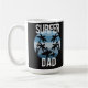 Un cadeau amusant pour un papa de surf montrant un design graphique retro de surfer au coucher du soleil.