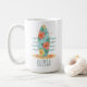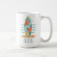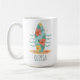 Cette tasse personnalisée est entourée d'une planche de surf enveloppée de fleurs douces d'hibiscus tropicaux en rose, corail et jaune. Entourés d'une palette de bleus océaniques, de beiges de sable et de greens de mer, les douces touches ondulées ajoutent une ambiance côtière calme.