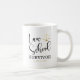 Tasse de diplômé de l'école de droit montrant les échelles de justice, le drôle de dicton "survivant de l'école de droit", et l'année de classe.