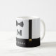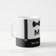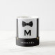 Sip your coffee like a distinguished gentleman with this cool monogram mug for men and boys. Designed with formal suspenders and a fancy bowtie, this cup is the perfect kitchen addition for coffee, tea or hot chocolate drinkers. Personalize it with his name and initial for a luxury gift that will be one to remember.
