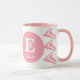 Doux 16 tasse de café. Rose et blanc, avec flèches, cercles, nom et monogramme idée cadeau pour 16e anniversaire.