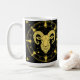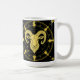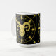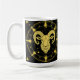 Représentation artistique du symbole du zodiaque Bélier dans des tons dorés, ornée de motifs célestes et géométriques, émanant une ambiance mystique et astrologique qui met l'accent sur les interprétations horoscopiques.