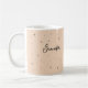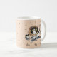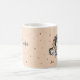 Une tasse Leo Cat personnalisable dans une ombre d'abricot pâle ajoutant une torsion Quirky Cat aux illustrations habituelles Leo étoiles signe là-bas, Un chat noir et blanc mignon porte une crinière fine et couronne accompagnée de ses sujets, 'Leo' texte & dates sont écrits sous l'illustration et le nom au verso peut être personnalisé ou supprimé. L'image a été peinte à l'origine pendant l'hiver 2023, inspirée par les nombreux chats que j'ai connus et initialement créés pour faire partie d'un calendrier - je voulais apporter un moment de joie et d'humour à la journée des utilisateurs. Il y avait tellement de potentiel dans les illustrations que je savais juste qu'ils devaient avoir une vie au-delà du calendrier ! J'ai créé le dessin à l'aide d'un stylo à trempette traditionnel et d'encre indienne avec tous les éclaboussures et les lignes ondulantes que cela produit, cela donne à mes dessins un style vivant et amusant et j'espère que cette tasse d'horoscope de chat Leo apporte aussi un peu de plaisir à votre journée! S'il vous plaît envoyez-moi un message si vous voulez voir cette tasse téléchargée avec une couleur arrière - plan différente.