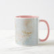 Elégant thème astrologique zodiac Virgo la Vierge étoile signe café Mug sur subtil bleu glace mottled arrière - plan cosmique. typographie de police populaire monogramme nom et détails de texte peuvent être facilement personnalisés ou supprimés. Une touche de parties scintillant en faux or céleste ajoute un peu de glamour et de mystique. Disponible dans les 12 enseignes pour créer un ensemble correspondant - avec option pour customiser l'intérieur et gérer la couleur via le menu d'édition Zazzle.