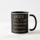 Cette tasse de café à l'horoscope Aries est la meilleure façon de célébrer votre signe. La tasse présente un arrière - plan noir avec typographie dorée, le symbole Aries (bélier), et une liste des traits Aries et des dates de zodiaque. Le cadeau parfait pour n'importe quel Bélier. Pour d'autres couleurs ou produits similaires, visitez https://www.zazzle.com/store/charnellescanvas ou contactez le concepteur, charnellescanvas@gmail.com. #zazzlemade