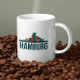 Moin ! Élégante tasse à café montrant l'horizon de la ville allemande de Hambourg Allemagne avec tous les sites célèbres comme l'Elbphilharmonie, le Speicherstadt, le port de Hambourg ou le Michel. Pour chaque idée cadeau de Hamburger extraordinaire.