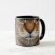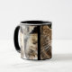 A hilarious and unique mug design featuring two close-up photographs of an adorable brown tabby cat. One photo shows the cat's intense green eyes, nose, puss and whiskers, and the other captures the fluffy front tabby legs and paws. Perfect for cat lovers, veterinarians, pet owners, or anyone who enjoys quirky, abstract, and humorous animal designs. A fun way to enjoy your morning coffee or tea!