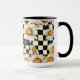 Retro Super Daisy Checkerboard Nom personnalisé Tea Coffee Mug dispose d'un motif margueux super sur un arrière - plan motif damier noir et blanc avec votre texte personnalisé ou votre nom personnalisé au centre. Parfait comme cadeau pour la famille et les amis pour Noël, anniversaire, fêtes, fête des mères, collègues de travail et plus. Créé par ©Evco Studio www.zazzle.com/store/evcostudio