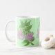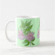 Le tableau original de cette jolie bande de fuchsias roses est un tableau couleur eau. Les fleurs roses douces sont suspendues parmi quelques feuilles vert tendre et sont dessinées dans un style très esquissé à l'aide d'un stylo noir fin. Les fleurs fuchsia roses paraissent bien contre l'arrière - plan noir sur cette tasse fleurie de qualité.