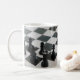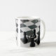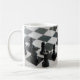 Photographie d'un coin de tableau d'échecs avec des pièces noires en position d'accueil. Conception imprimée sur les deux côtés de la tasse. Couleur, taille, style sont personnalisables.