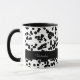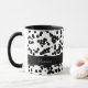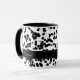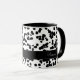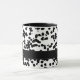 Un motif noir et blanc repéré de fourrure dalmatienne de chien. Une bannière noire avec les points et le texte blancs fonctionne à travers. Le texte peut être customisé.