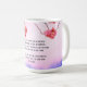Belle tasse chrétienne personnalisable avec des écritures et fleurs de cerisiers.