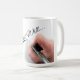 Célébrez l'art de l'écriture manuscrite avec cette tasse à café élégante qui présente une main, un stylo et un design d'écriture. Parfait pour les écrivains, les artistes ou toute personne qui apprécie la beauté des notes manuscrites.