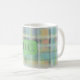 Mug Tartan plaid initiales vert bleu gris beige pastel