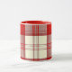 Le design est un tartan ou un plaid rouge et blanc. Tasse à café avec une version mise à jour d'un ancien design d'Alma Wad. Idéal pour se retrouver en famille. Maintenant, vous pouvez ajouter un monogramme, un nom, une marque, etc, pour le rendre unique à vous.