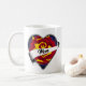 Personnalisez la tasse de café de tatouage Maman avec coeur de ciel lacé rempli d'une rose jaune et rouge et d'un ruban avec le mot MOM dans le centre le tout dans le style de tatouage classique. Vous pouvez changer le texte en n'importe quelle Mère ou un nom sur la tasse. Une grande tasse à café à donner comme cadeau de jour pour la mère pour la maman votre vie.