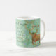 Taurus tasse moderne zodiaque dispose d'un arrière - plan vert printemps doux avec un motif de glyphes Taurus, des signes de paix, des étoiles pastel et des sprigs verts. De beaux taureaux se font face de part et d'autre de la tasse avec les traits les plus flatteurs du taureau paisible listé entre eux. Personnalisez ceci avec le nom d'un taureau merveilleux que vous connaissez.