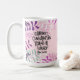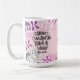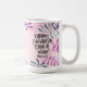 Taza de café con frase en español "Camina confiada sin temor al futuro" hermosa frase de proverbios 31 que nos recuerda no temer al futuro porque confiamos en la bondad de Dios y en lo que Él hará.