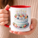 Taza de cerámica con diseño dulce y encantador, ideal para celebrar momentos especiales. Presenta una delicada ilustración de una torta de cumpleaños con capas en tonos pastel, decorada con frutillas y velas, creando un estilo alegre y festivo. Perfecta para regalar o disfrutar de tu café o té favorito, aportando un toque cálido y colorido a cada día.