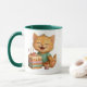 Taza de cerámica con diseño adorable de gatito celebrando su cumpleaños. Presenta una ilustración alegre y colorida, con detalles encantadores como un pastel y un cupcake, ideal para transmitir ternura y felicidad en cada uso. Su interior y asa en color verde le aportan un toque moderno y llamativo. Perfecta para disfrutar de tus bebidas favoritas o como regalo especial para niños y amantes de los animales.