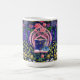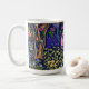 Chaise confortable et isolée avec livre et teacup, entourée par la beauté et la tranquillité d'un jardin — un endroit paisible avec des roses, azalées, périwinkle, et plus — en multicolores sur un arrière - plan bleu profond. Un des quatre mugs avec différentes couleurs chaise/boo/teacup. Illustré par l'artiste L Diane Johnson, qui a voyagé pour capturer certains des jardins les plus attachants du monde. Bon appétit !