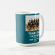 Teal Thank you Coach Team Name and Team Photo Coffee Mug. Personalize with your coach name, team name and year. You can change any text on the mug or erase it. A great gift for a coach! Add a team photo and get the team to sign the non-designed areas of the mug with a fine point permanent marker for a wonderful keepsake.