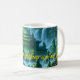 Coffee mug of a Chinese temple castle made entirely of magical green jade. Clean blue waters encircle the structure while silent jade sentinels flank the way to the castle's crystal gates. Legend has it that within the teeming jungles of the country lay hidden the castle of the benevolent, yet enigmatic, Empress Liáo Yù Yù and her mystical throne of glowing jade. Adventurers and treasure seekers, dignitaries and holy men, beggars and businessmen, had all come from the many corners of the world trying their luck to find this mythical place, but only the truly worthy were successful. Their quest was to sit on the glowing throne of jade that once belonged to the Empress, for it is said that it cured you of all your most painful and deathly ailments. To some, the throne even granted eternal life, but, woe to those whose intentions were selfish, for just as they sat on the ancient seat of power, they were never seen again... This artwork was created with ImageFX and upscaled with Leonardo.ai. Additional editing was done offline by me.