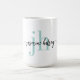 Tendance vers un style simple avec l'attrait du designer, ce design de tasse moderne comprend votre nom épelé dans un script de calligraphie manuscrit avec des queues de tête et de fin pour ajouter un look élégant. Vos premières et dernières initiales sont présentées dans une face de type serif industriel moderne en aqua turquoise sous la calligraphie. Le résultat est élégant ! VEUILLEZ NOTER : Lorsque vous personnalisez votre nom sur cet élément, veillez à laisser les symboles de la boîte avant et après votre nom. C'est ce qui fait imprimer les queues avant et après votre nom.