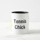 Un poussin jaune tenant une raquette et une balle de tennis est un cadeau amusant pour les moniteurs de tennis et les joueurs. Le texte peut être modifié