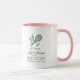 Célébrez le dernier tour de piste de la mariée avant la bague avec cette élégante tasse de bachelorette de tennis personnalisée. Avec une illustration chic de raquettes croisées et de martini avec nom, lieu et date personnalisés, cette tasse en céramique bicolore élégante est un souvenir parfait pour une fête de hen party sur le thème du tennis, un week-end entre filles ou un cadeau pour les demoiselles d'honneur.