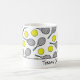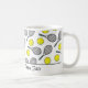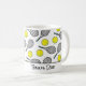 Tennis Mug avec balles jaunes et raquettes noires sur blanc. PÈRE OU MÈRE DE TENNIS en noir. Facile à personnaliser le texte, la couleur du texte. Idéal pour les cadeaux de Tennis Lover/Joueur/Senior/Team/Fan. Mélangez et appariez avec tous nos sacs cadeaux de Tennis Collection par TMCdesigns.