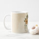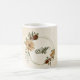Tasse à café unique avec des fleurs en terracotte rustique romantique et des feuilles vertes.