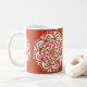 Ce mandala blanc est assis sur un arrière - plan orange foncé. Les couleurs sont créatives et chaleureuses. Partie de la collection Kylgh Mandala.