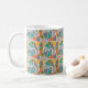 Cette tasse présente un design moderne du milieu du siècle de triangles faisant un sol en terrazzo, en gris, turquoise, orange, or et vert.