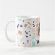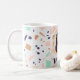 Arrière - plan blanc avec motif multi coloredterrazzo en bleu, brun, menthe, beige et bleu. Faux parties scintillant, éclaire autour de la photo. Personnalisez et ajoutez une photo et un nom. Le nom est écrit avec un script de style écrit à la main avec des swashes. Pour que les swashes ne suppriment que le nom de l'échantillon, laissez les espaces ou émoticônes devant et après le nom.